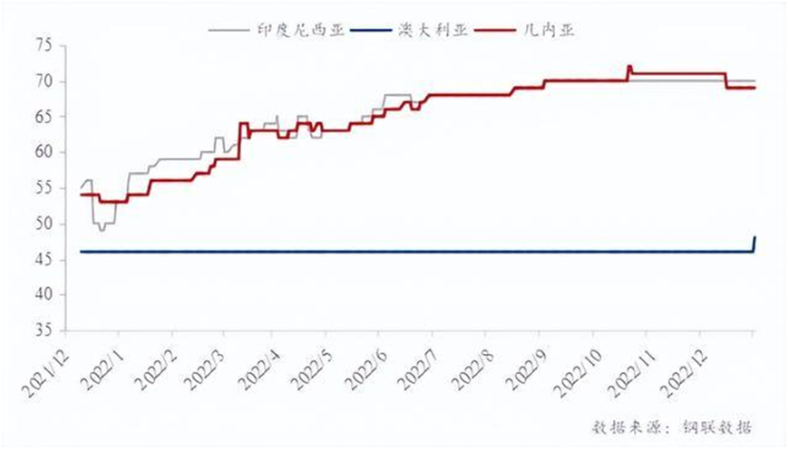 進口礦價格走勢圖(單位:美元/干噸)