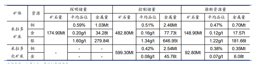 米拉多銅礦床一期于2021年達產,銅礦石的處理能力為 2000萬噸/年,每年產出約9萬噸銅金屬量對應的銅精礦,二期設計擴大到 2,640萬噸/年;米拉多北銅礦床二期設計采選能力 1980萬噸/年。米拉多銅礦整體二期項目預計于2025年6月建成投產,擴建后總采選規(guī)模將達4620萬噸/年,預計每年產銅超20萬噸。