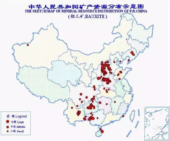 中國(guó)鋁土礦資源豐度屬中等水平,產(chǎn)地310處,分布于19個(gè)省(區(qū))。總保有儲(chǔ)量礦石22.7億噸,居世界第7位。