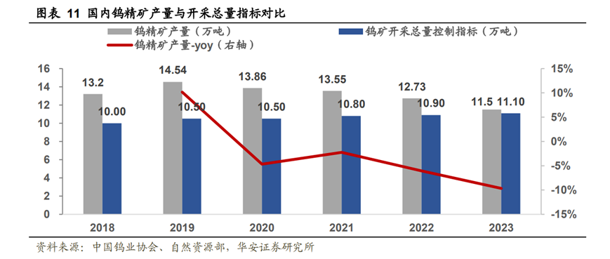 1999年起,我國暫停了鎢礦開采許可證的發放,2002年我國開始正式對鎢開采總量進行控制,有效的抑制住了開采量增長過快的問題,也強化了我國鎢資源的定價地位。