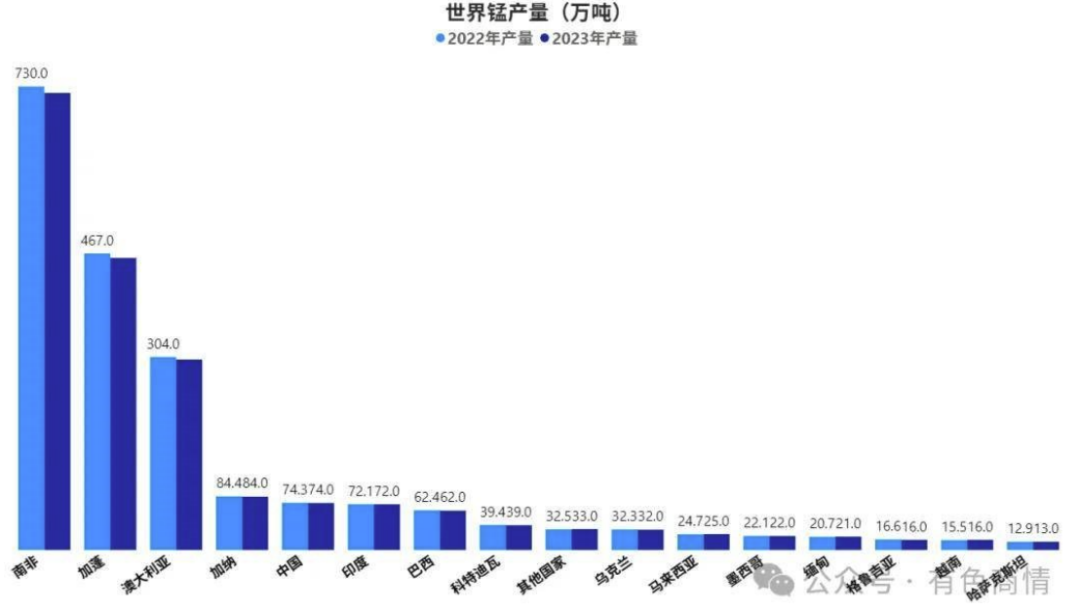 錳礦,是一種非常重要的戰略礦產資源,尤其是富錳礦和優質錳礦資源,已經被中國列入到緊缺的礦種。錳及其化合物應用于國民經濟的各個領域,每輛特斯拉Model 3需要6.8公斤錳,而比亞迪刀片電池的磷酸錳鋰技術對高純度錳需求激增,錳已成為鋼鐵、新能源、新材料等產業的基本原料。從儲量分布來看,根據中國地調局發布的《全球礦產資源儲量評估報告2024》顯示,全球錳儲量28.6億噸(礦石量,下同),主要分布在南非(29.95%)、巴西(20.98%)、中國(9.79%)和加蓬(7.57%)等國,俄羅斯、澳大利亞、印度尼西亞、印度、墨西哥和喀麥隆等國家也有少量分布。